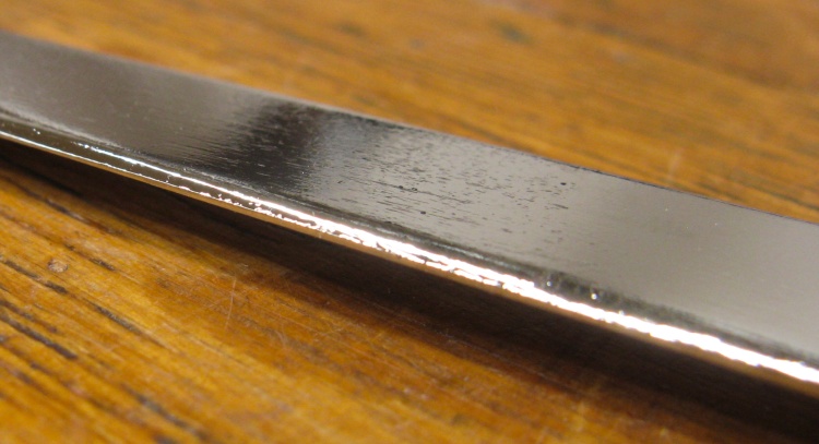 The new blade had a pretty cheesy finish; chrome with streaks and pits accompanied by a rough edge from stamping or poor polishing.
