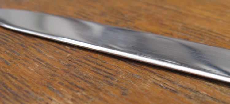 I started by removing the finish which also flattened the faces of the blade and smoothed the edges.