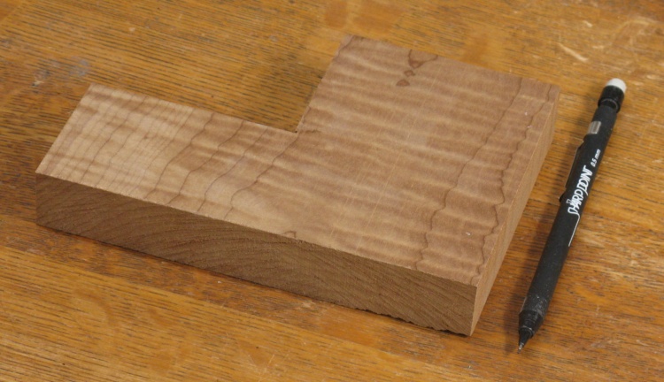 After looking around the shop I realized I still had some scraps of one of my favourite woods - Roasted Curly Maple. It wasn't a big piece but it was more than enough for a little handle.