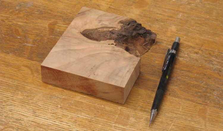 This little chunk of leftover cherry with part of a huge knot wouldn't be useful for anything sizeable but that clear area should be enough to supply a few miniature trees.