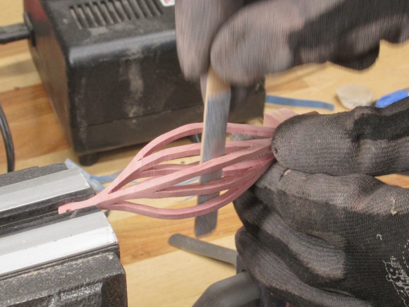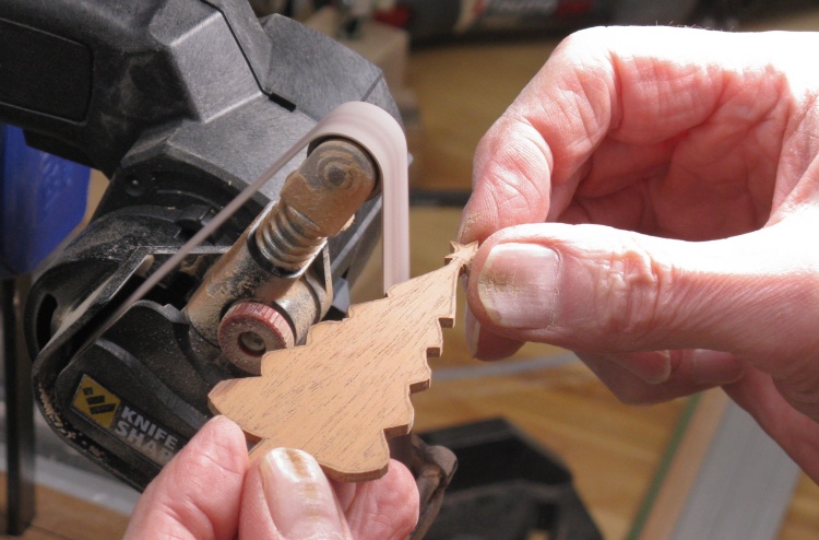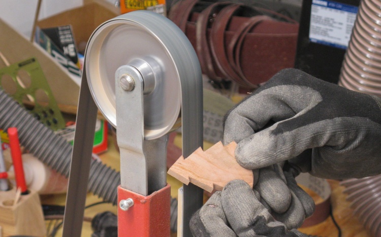 After being cut roughly to the outline using the small band saw, the edges were sanded closer to the outline with the mini belt sander.