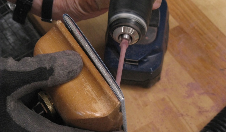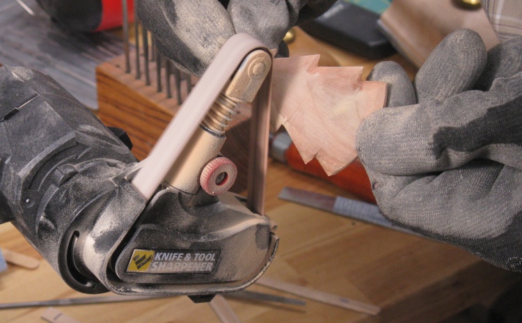This smaller belt sander (OK, technically a knife sharpener) let me do some more-detailed tapering.