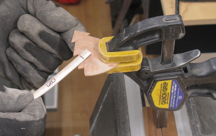 Each of the clappers was associated with a specific bell so I knocked together this organization-and-drying setup to keep things matched during finishing operations.