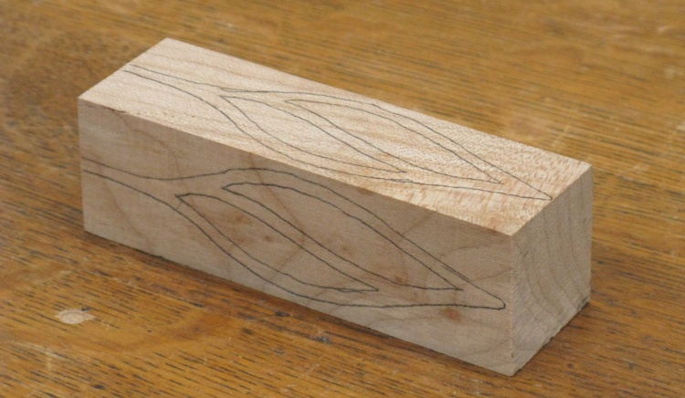 Here the pattern can be seen on two sides of a Figured Maple blank.