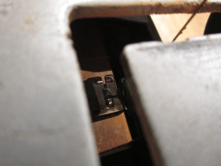 And when the adapter is reconnected you need to hook it into a tab under the table of the saw, only visible through the slot (assuming your piece of wood is small enough to see around). This process can get less annoying with practise but it never becomes easy.