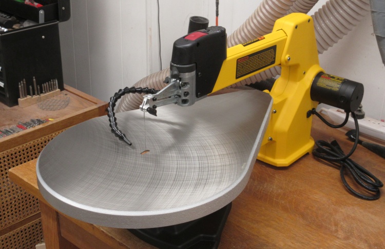 This is the shiny new saw - a Dewalt DW788 20" variable speed scroll saw. It was larger than what I really need (and heavier than what I can really lift) but it was supposed to be the best non-professional model and has good blade handling.