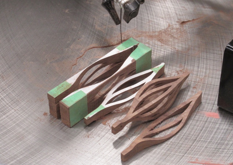I used my miniature (8") and ancient (32 years old) band saw to cut out the shapes.