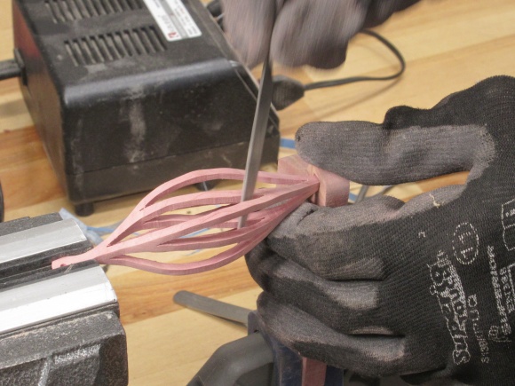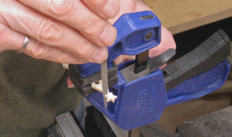 Finally I got around to cleaning up the top stars which had been roughly cut out with the band saw. That took some sanding jigs and fine needle files like this one.