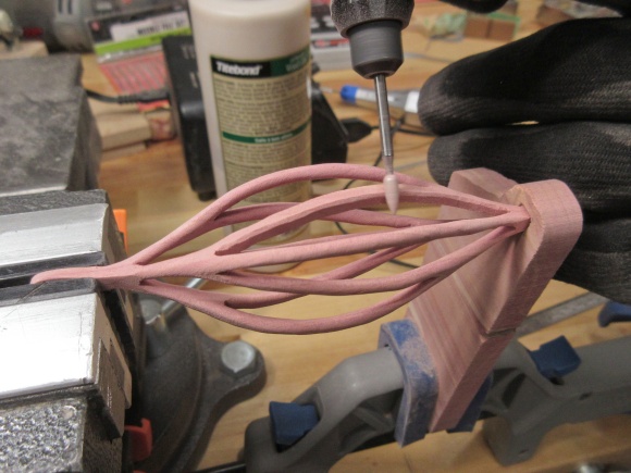 The remainder of the hollowing followed. I used my captured hollowing jig as usual which has the tiny carbide cutter at the end.