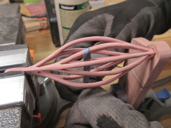 And then the ornament "just" needs to be made presentable. The scroll saw leaves a surprisingly smooth surface but tiny wobbles in the blade path needed to be smoothed out and thin slots need to be touched up.