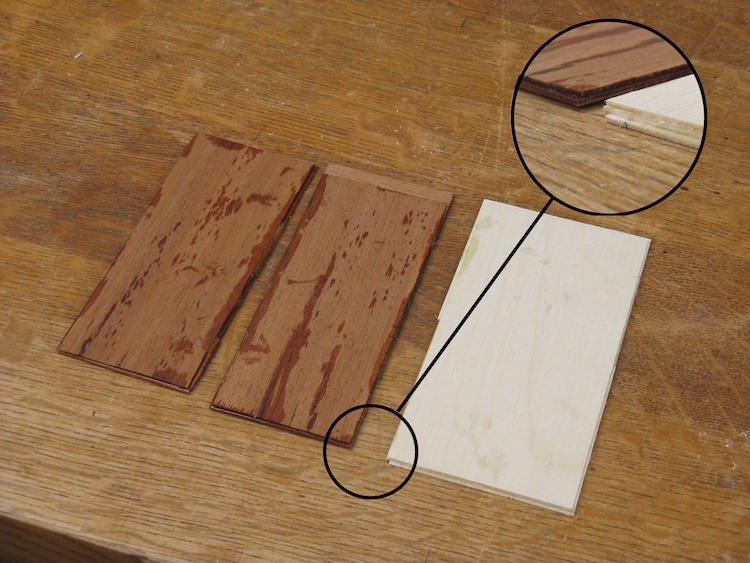 Each blank would have three layers of wood with the grain of the center layer at right angles to the outside layers.