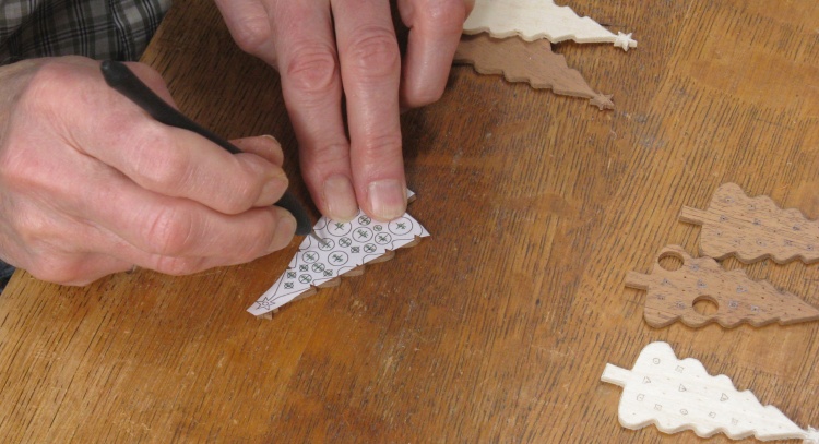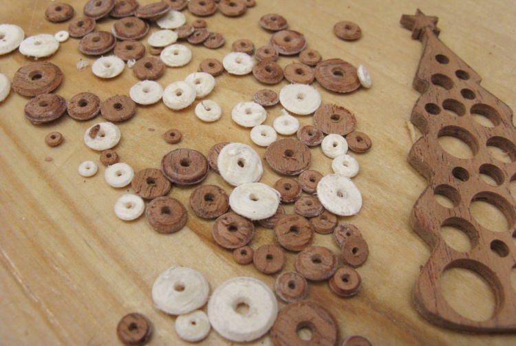 The closely-spaced holes in the design results in very thin sections of wood between the holes which would likely be susceptible to breakage so I made the trees from a thin 3-layer plywood. That provides grain in both directions throughout, improving strength of any thin sections.