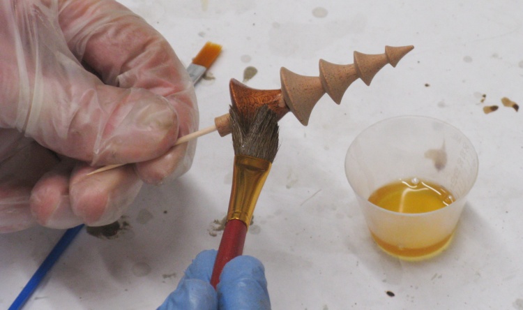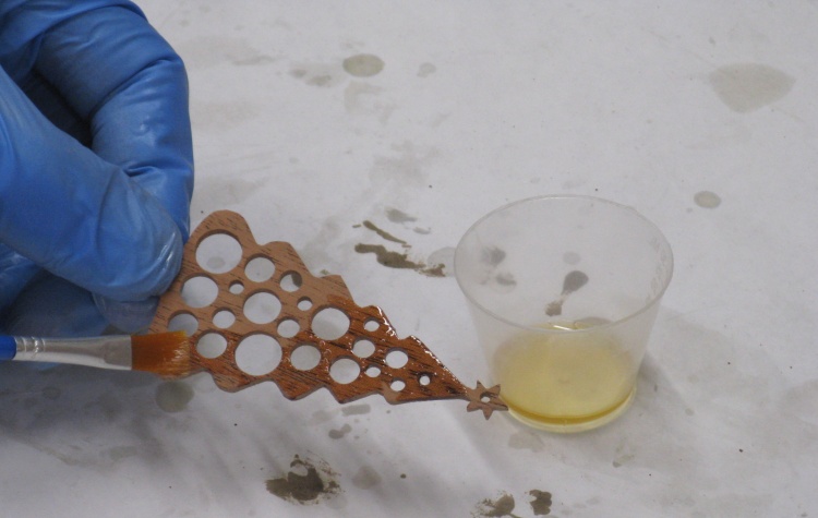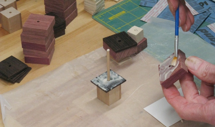 The 2s were a bit involved to varnish since the insides of each hole needed to be coated. I used two different sizes of brushes to help with that.
