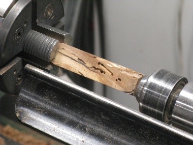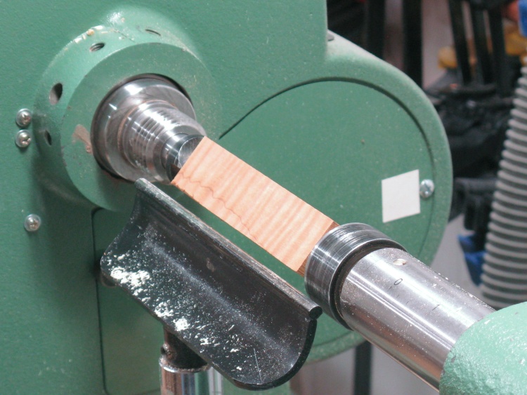 Next up was a piece of Figured Maple and here the blank is on the lathe ready to go.