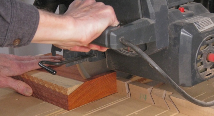 With the saw on a table, I started in on the blanks. The saw itself is actually very quiet but the blade cutting through the wood is surprisingly loud - hence the hearing protection.