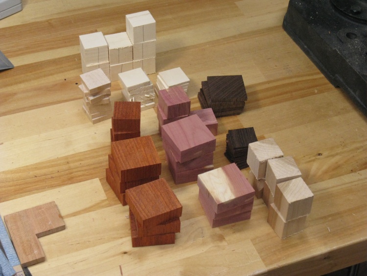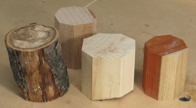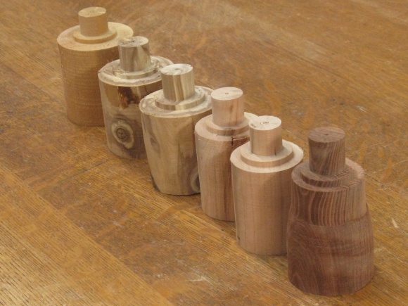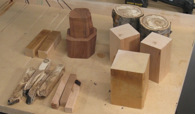 Eventually I had a number of blanks ready to go. These included Aromatic Cedar, Cherry, Mahogany and Ornamental Crab.