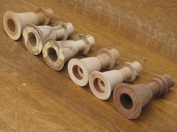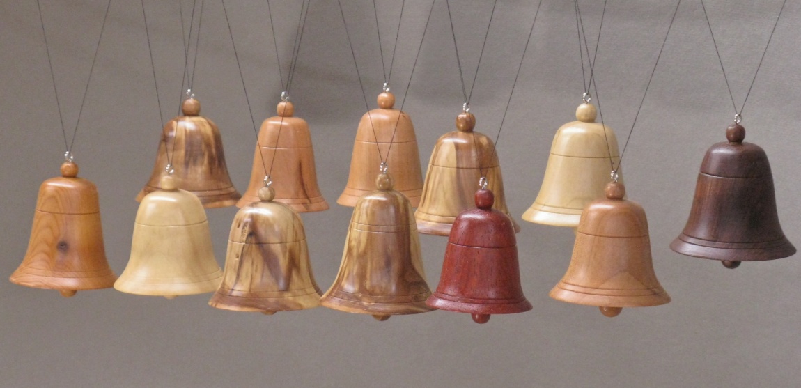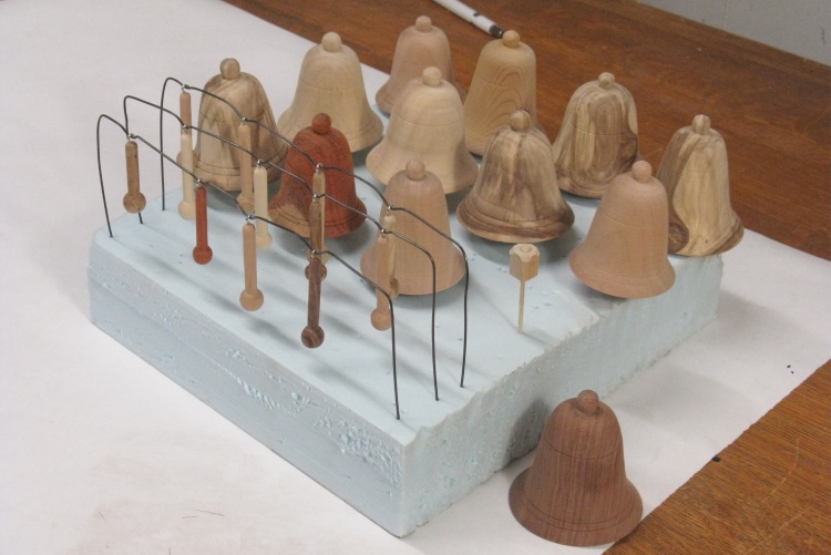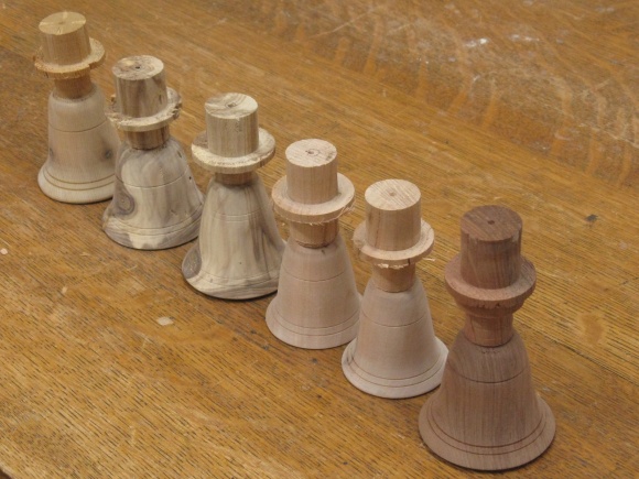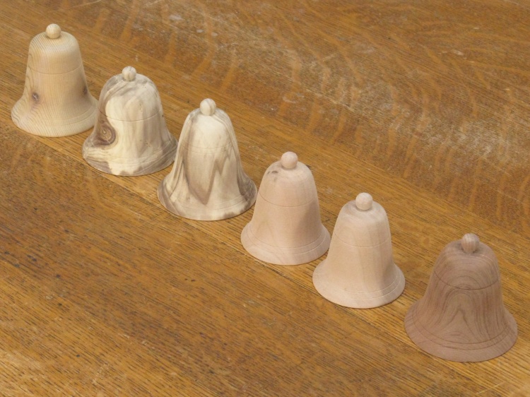 All six of the bells were turned successfully (well, except for the Redwood flying apart at the glue joint - but I executed a successful repair and carried on).