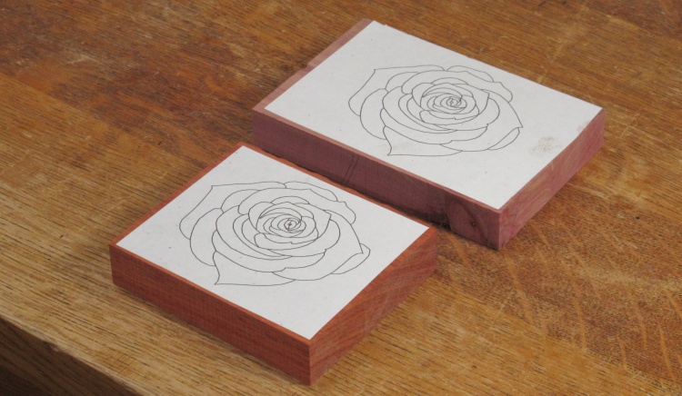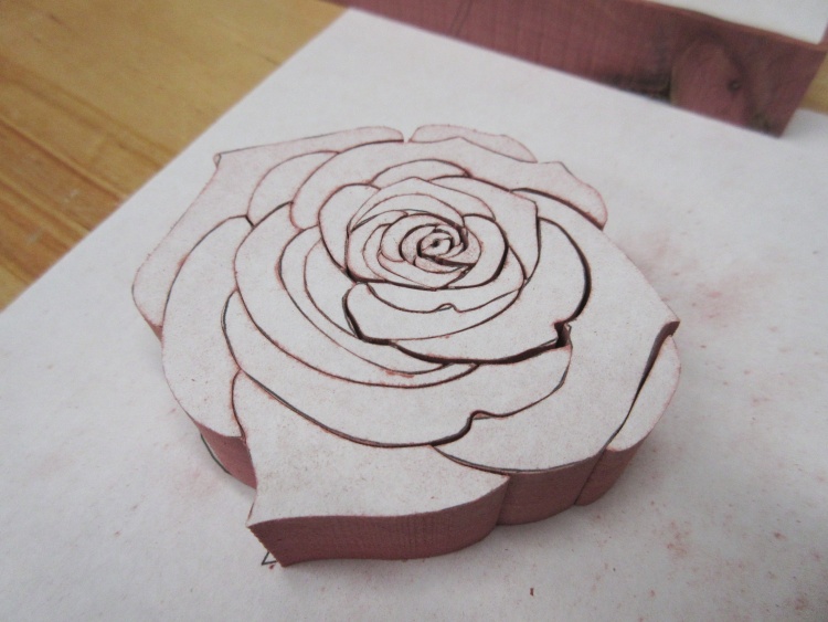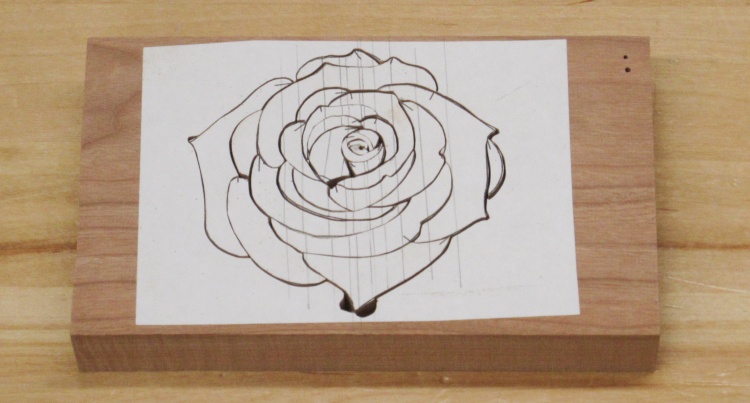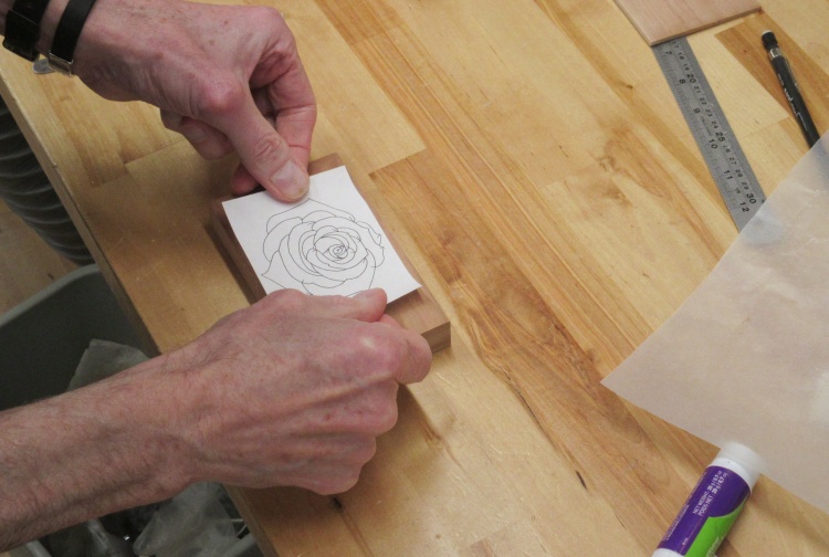 The rose shape was marked on the wood and it was cut out larger to make alignment easier.