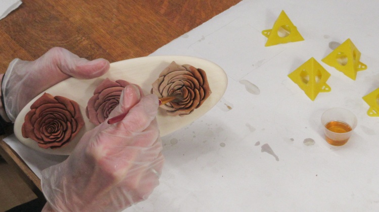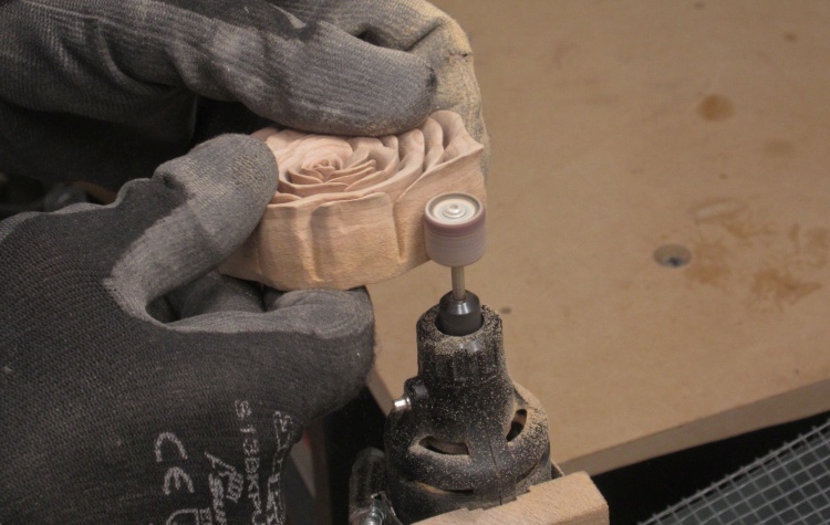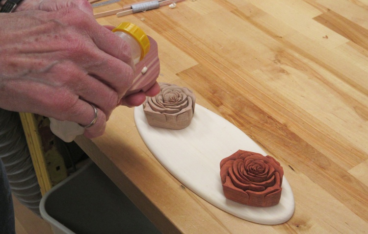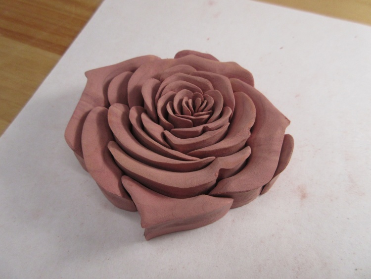 Once the glue was dry, the rose got some outside shaping to smooth off the bottom and give the sides a bit of a taper.