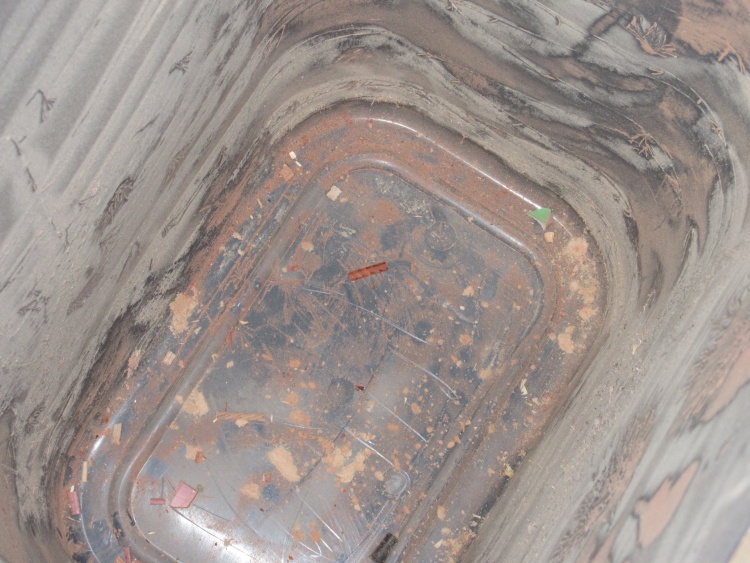I carefully removed the dust collector bin to avoid disturbing the lay of the dust. Upon inspection I failed to spot the piece so I hoped that it was still stuck somewhere in the system.