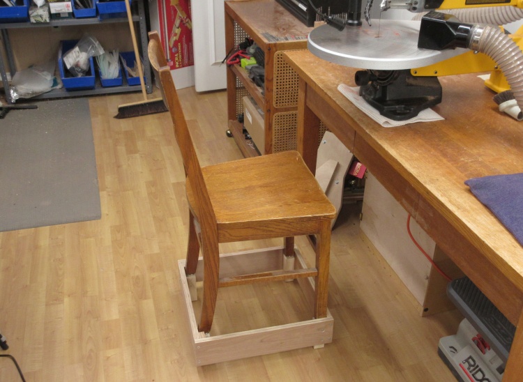 The chair just sits inside the lift with the walls preventing feet misalignment and subsequent catastrophic toppling. The lift can be stored away with the saw when I eventually mount it onto its dedicated metal stand.