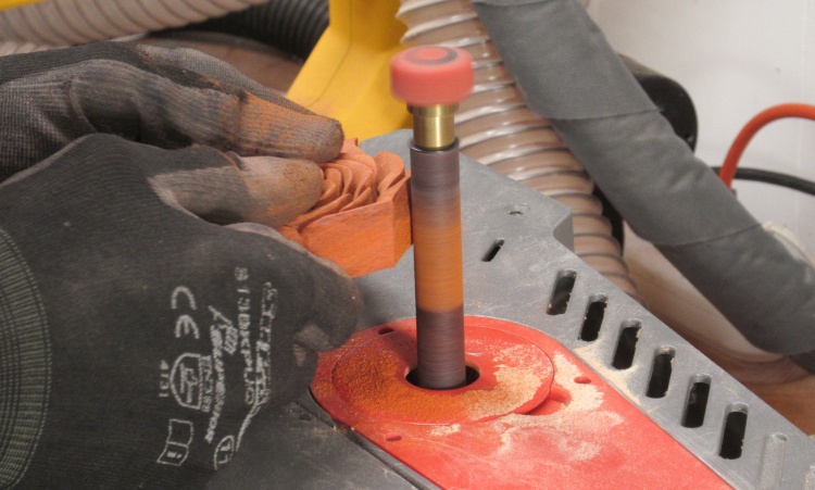 The Padauk sanding generated unusual bright-orange sawdust.