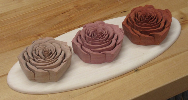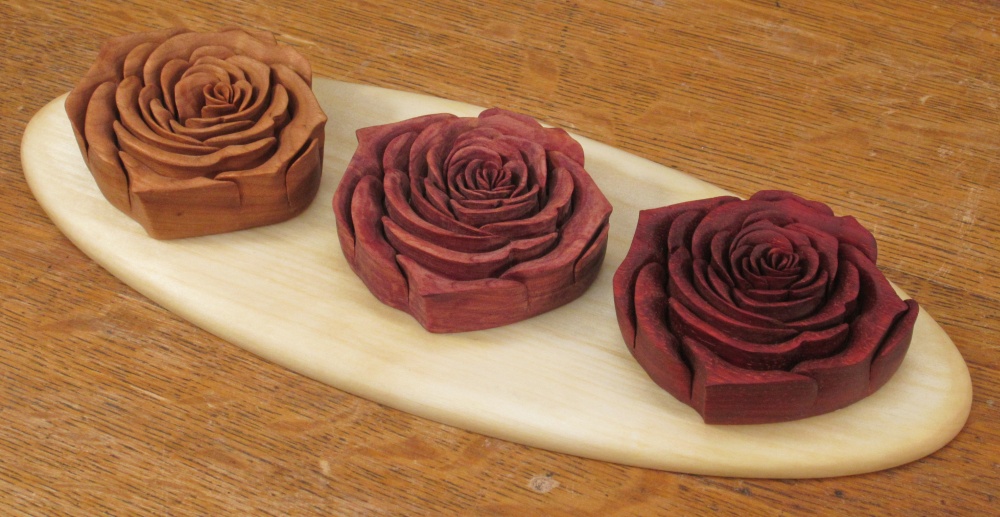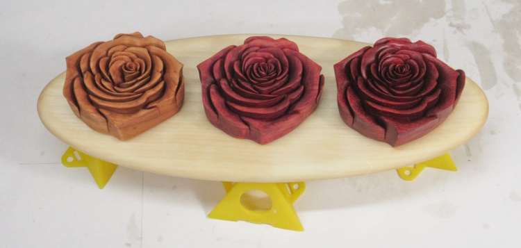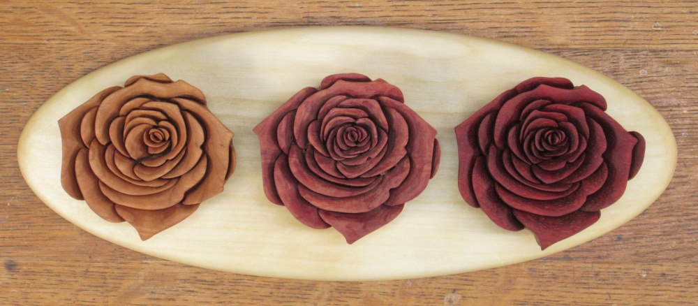 The Cherry coloured up nicely while the Cedar and Padauk roses mostly got darker.