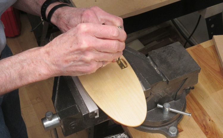 A pair of #3 brass screws were used to fasten the hook to the back of the plate.