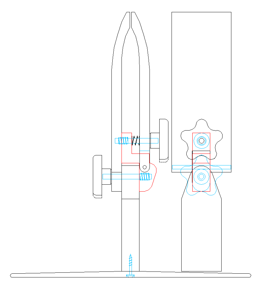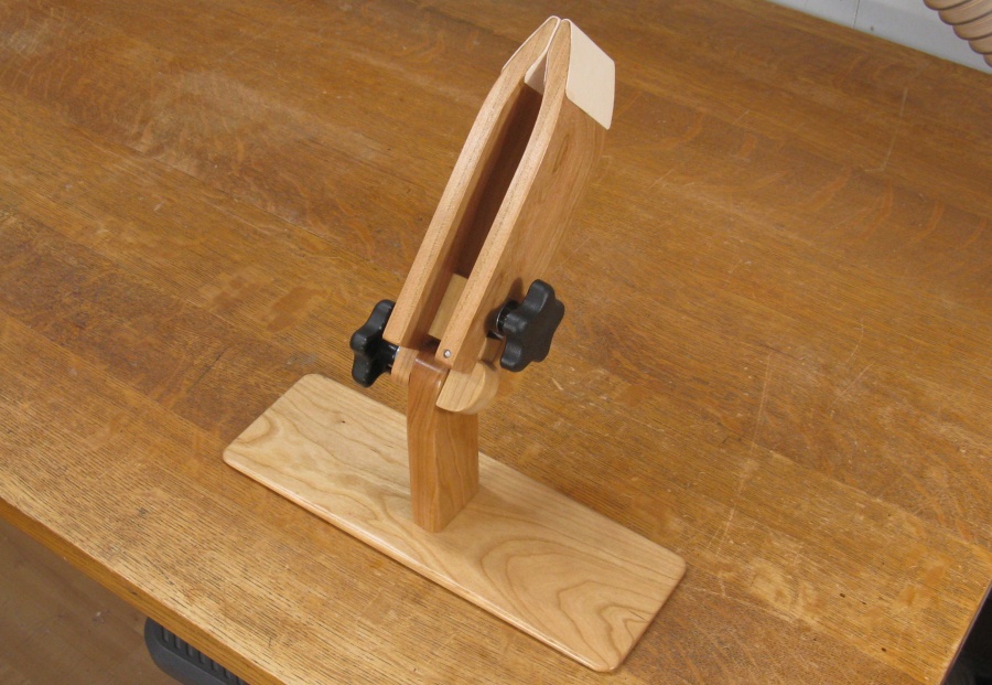 The design for this stitching pony was based on a commercially-available model that had been pointed out to me. Based on some investigation of what's out there in Stitching-Pony Land, it seems that there are a couple predominant designs; ones like this with curved arms and integrated jaws and then a somewhat cruder-looking version using straight arms with large jaws often separately attached. The latter design is probably somewhat simpler to manufacture and may have some subtle advantage over the curved design that isn't evident to this leather-stitching neophyte but the curved-arm design definitely looks cooler; Case closed.