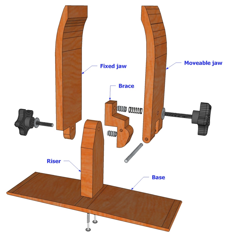 In addition to what can be seen here, there are of course two threaded inserts as well but they will remain embedded in the wood of the fixed jaw.