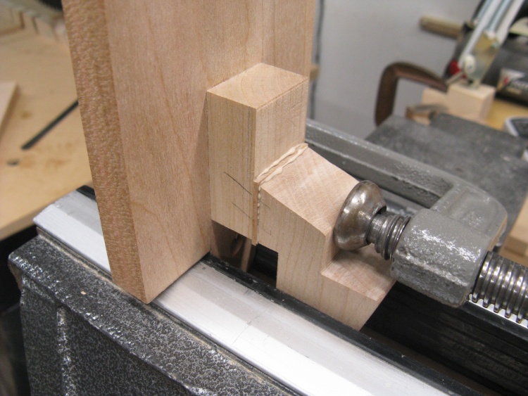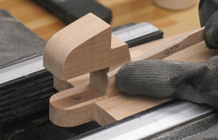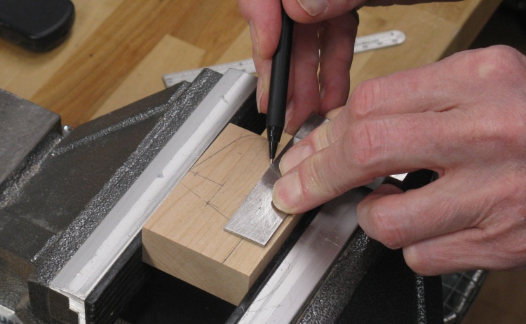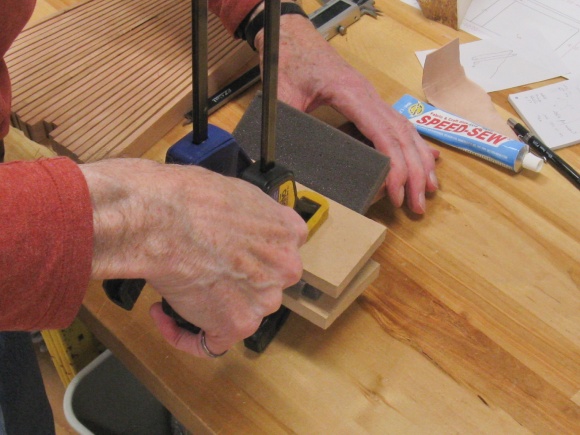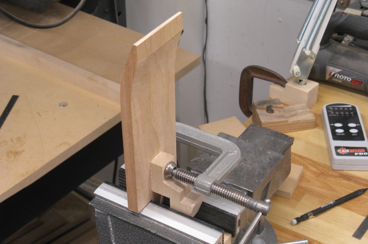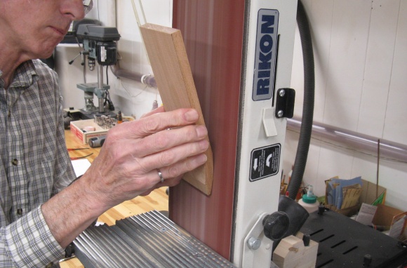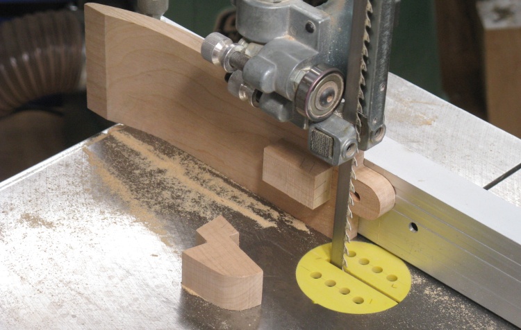 The jaws were cut to shape on the bandsaw, following pencilled-on lines for the curves.