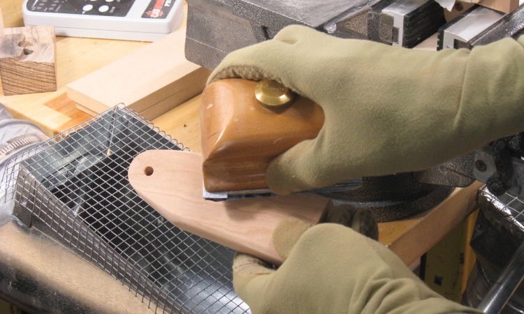 The last step was to do finish sanding on all the pieces. The edges and corners were rounded where appropriate and this shot shows the riser getting its turn.