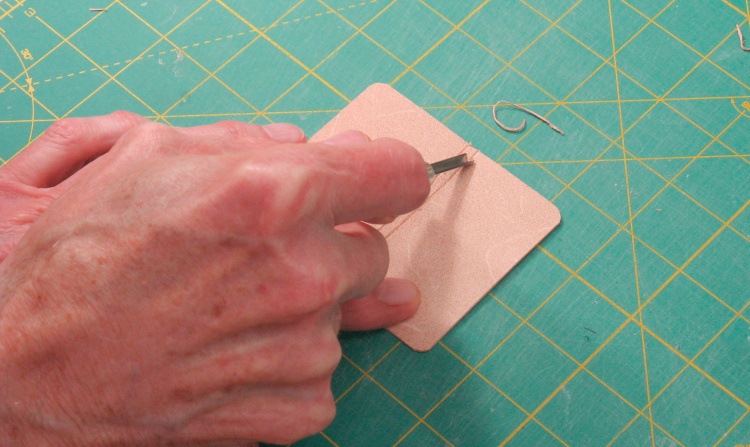 The too-round leather wrap was solved by easing the inside corners. In this shot I'm carving a small v-shaped tough where the leather wraps around the corners of the jaw. That should allow for closer-to-90° corners.