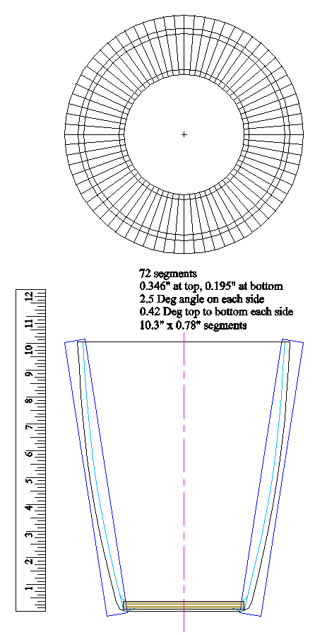 I decided to replicate the design in shape, color and construction although I would use Cherry rather than Bamboo. The original seemed to have upwards of 100 layers around the circumference but I didn't think the look would suffer much from a more modest number and aimed for 72. And, er...missed; it ended up with 80.