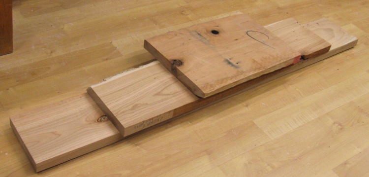 My calculations suggested that I'd need a width of about 27" of cherry at 11" long. This pile (after subtracting ugly edges and the odd knot) should be just about enough.