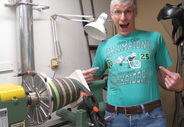 The rubber strap was clamped at the end to hold the tension while the glue dried. This photo was taken after the 112th Grey Cup, which you may have heard, the Riders won.