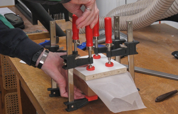 I had already added a clamp reaching over the short fence at the back and here I'm adding another for the front of the board.