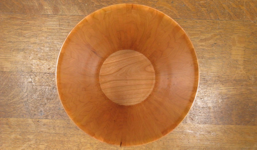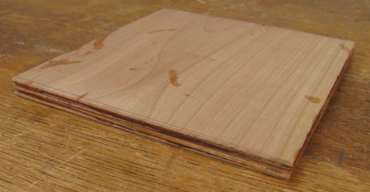 Each cherry ply is laid with the grain at right angles to the one before, which is what gives the plywood strength in all directions and the reluctance to expand with humidity changes.