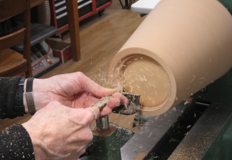 With the outside shaping done, I switched to thinning the walls from the inside.
