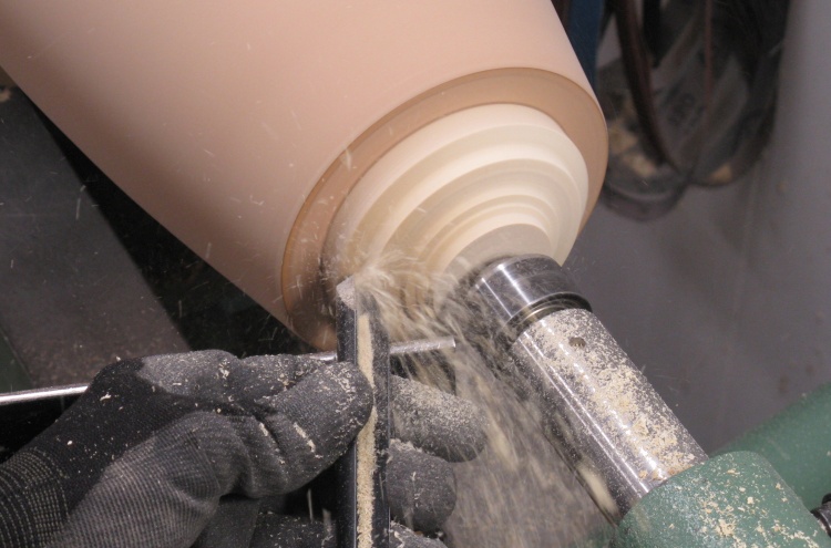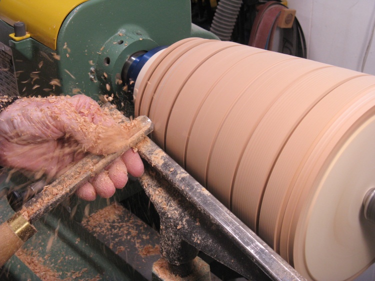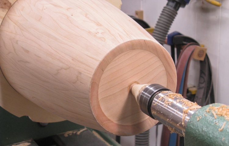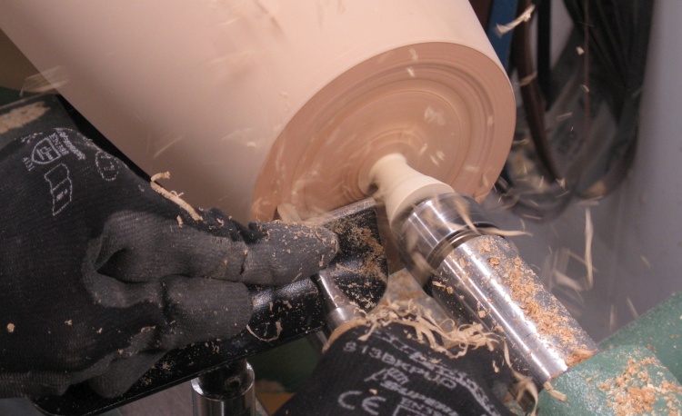 Bottom shaping was started by transforming most of the faceplate disc into sawdust.