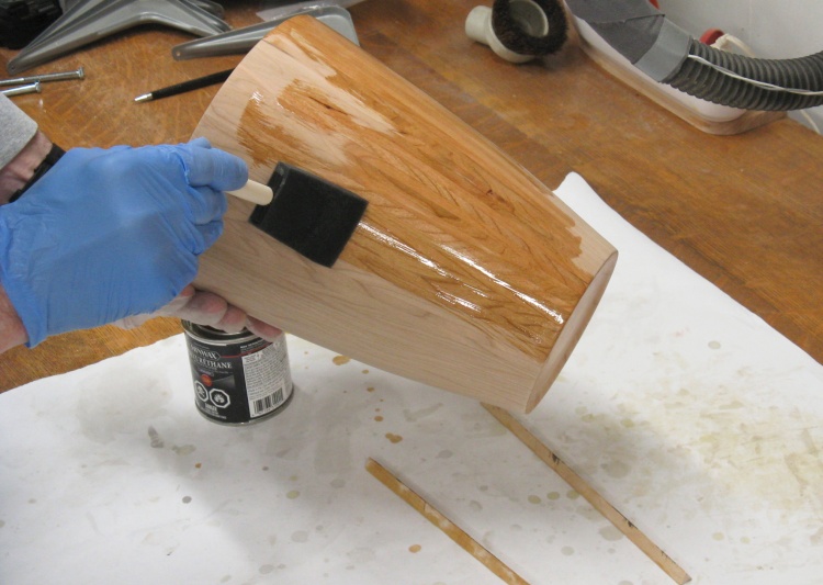 The varnishing was pretty straightforward. I used three coats of Minwax Fast-Dry Poly in Satin finish (or technically "Warm Satin" since a recent re-branding).